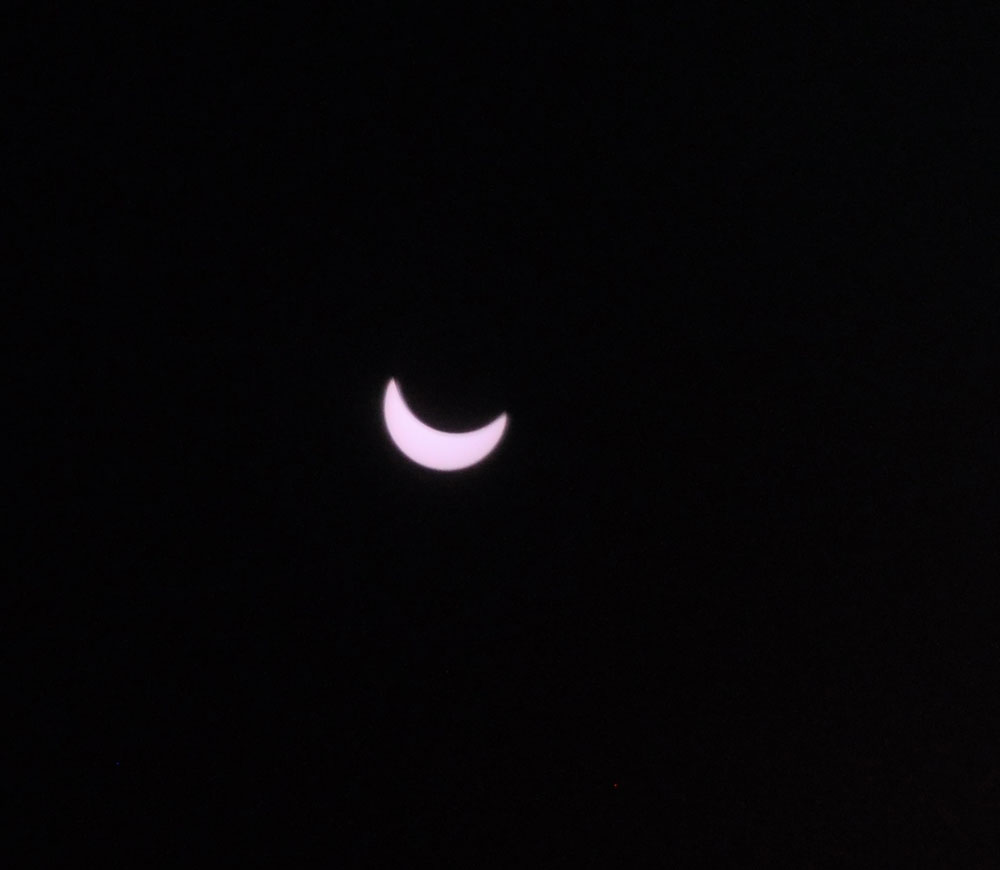 Also … gut aussehen tut es (die gelegentlichen Blicke, die ich mit Junior durch die doppelt gefaltete Rettungsdecke und die Camera obscura, die wir gestern gebastelt haben erhasche) – aber fotografieren lässt sie sich nicht wirklich von mir. Das braucht dann wohl Profi-Ausrüstung. Aber … irgendwie habe ich sie doch erwischt: siehe den Lensflare der iphone Aufnahme oben (schräg rechts unter der Sonne). :-)