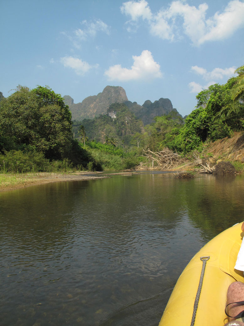 Die Landschaft mit den Kalksteinfelsen ist fantastisch .. und das Bootfahrten macht auch müde genug, dass man danach auch bei der üblichen Dschungel-Kakophonie schläft. Es ist wirklich erstaunlich, was da alles Geräusche macht: Vögel, Frösche, Insekten … Affen…
