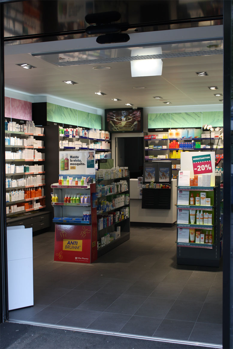 kleine, feine, aussen traditionelle, innen moderne Quartierapotheke. I like!